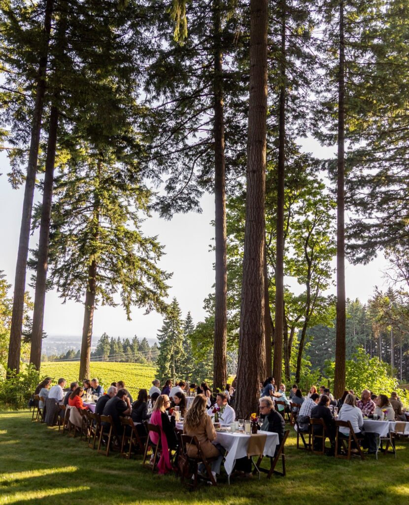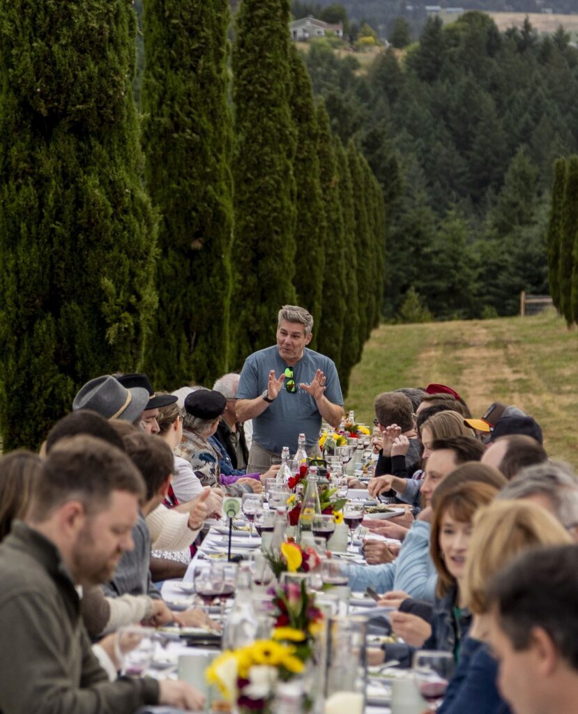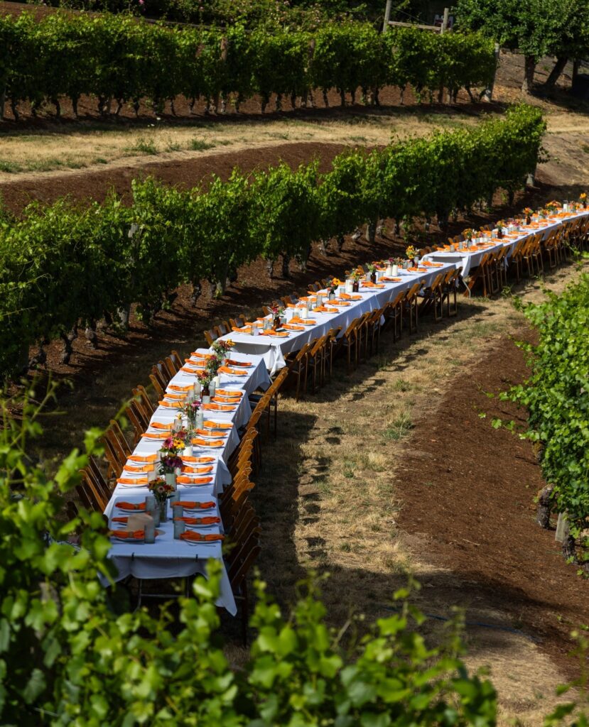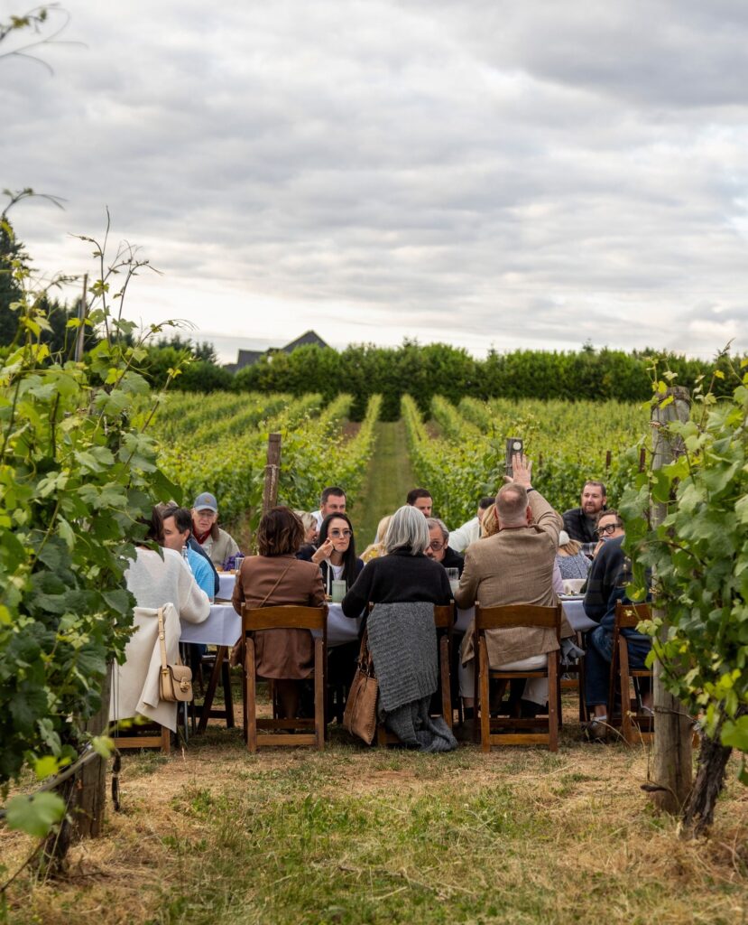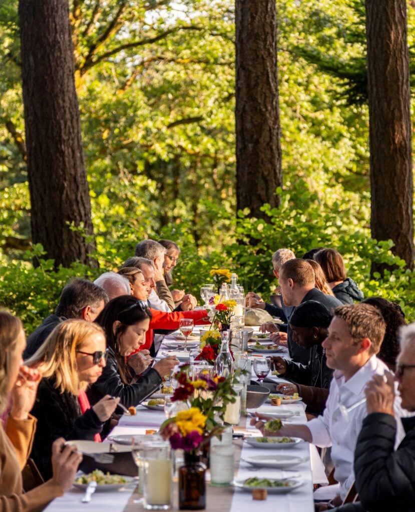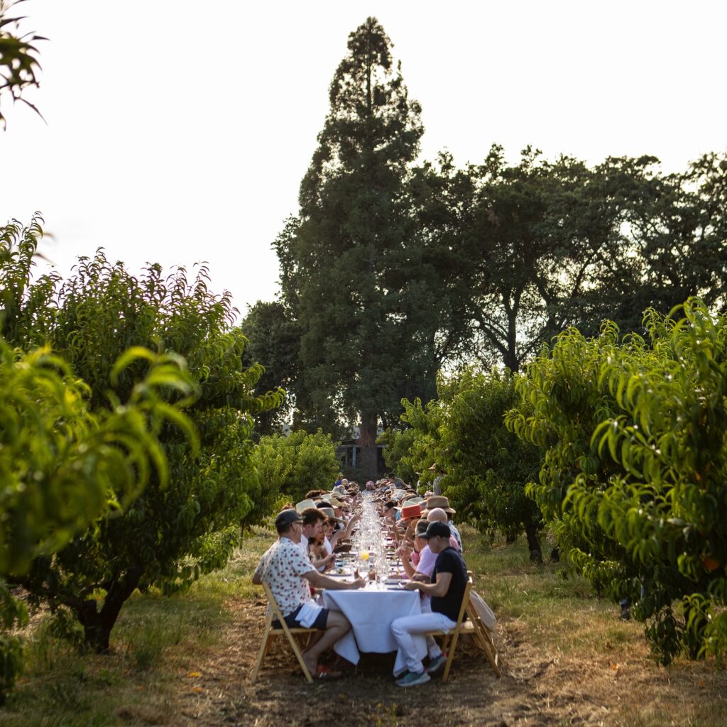 Друг ярък пример е поредицата Field & Vine в Орегон: шест – седем подредени ястия, продукти от съседните ферми, вина от района и едно единствено условие – вечерята се случва в „дъжд или слънце“, в полето, в плевнята или под навес, но винаги близо до хората и земята, които я хранят. Формата е „за споделяне“, тоест блюдата се подават в плата по масата, а разговорът тече естествено.